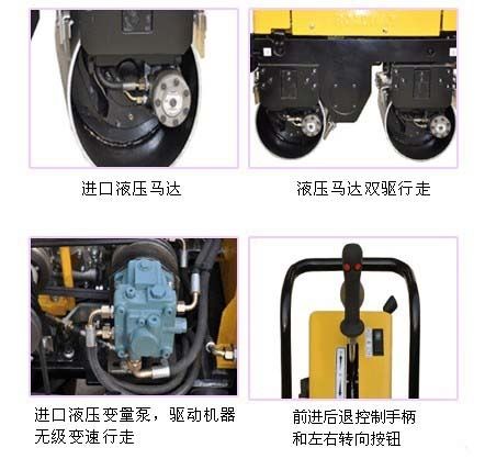 鼎誠(chéng)公司多年致力于小中型工程機(jī)械的研發(fā)與生產(chǎn),現(xiàn)在推出豪華版手扶式雙鋼輪壓路機(jī),此款機(jī)器采用國(guó)外先進(jìn)技術(shù),原裝進(jìn)口液壓馬達(dá),進(jìn)口液壓變量泵,無(wú)級(jí)變速,雙驅(qū)行走,自重840kg,振動(dòng)力可達(dá)3噸,前輪可液壓轉(zhuǎn)向,配備前進(jìn)后退手柄及左右轉(zhuǎn)向按鈕,工人一只手即可完成此款機(jī)器的操作,就是這么方便,就是這么給力。